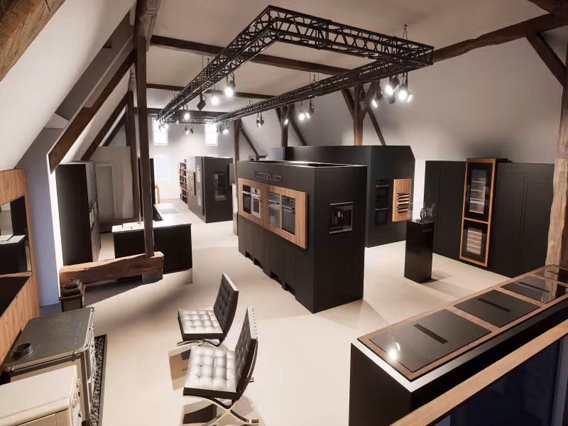 The Küppersbusch showroom at Gut Böckel is designed as an immersive brand space that brings industry professionals into close contact with the latest product innovations. With hands-on presentations and direct communication channels to the Küppersbusch team, the showroom offers an ideal platform for knowledge sharing and strategic networking.